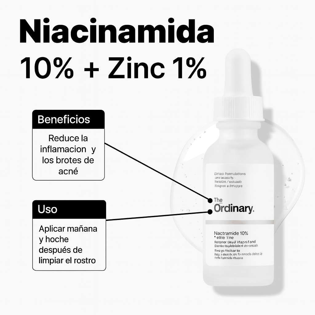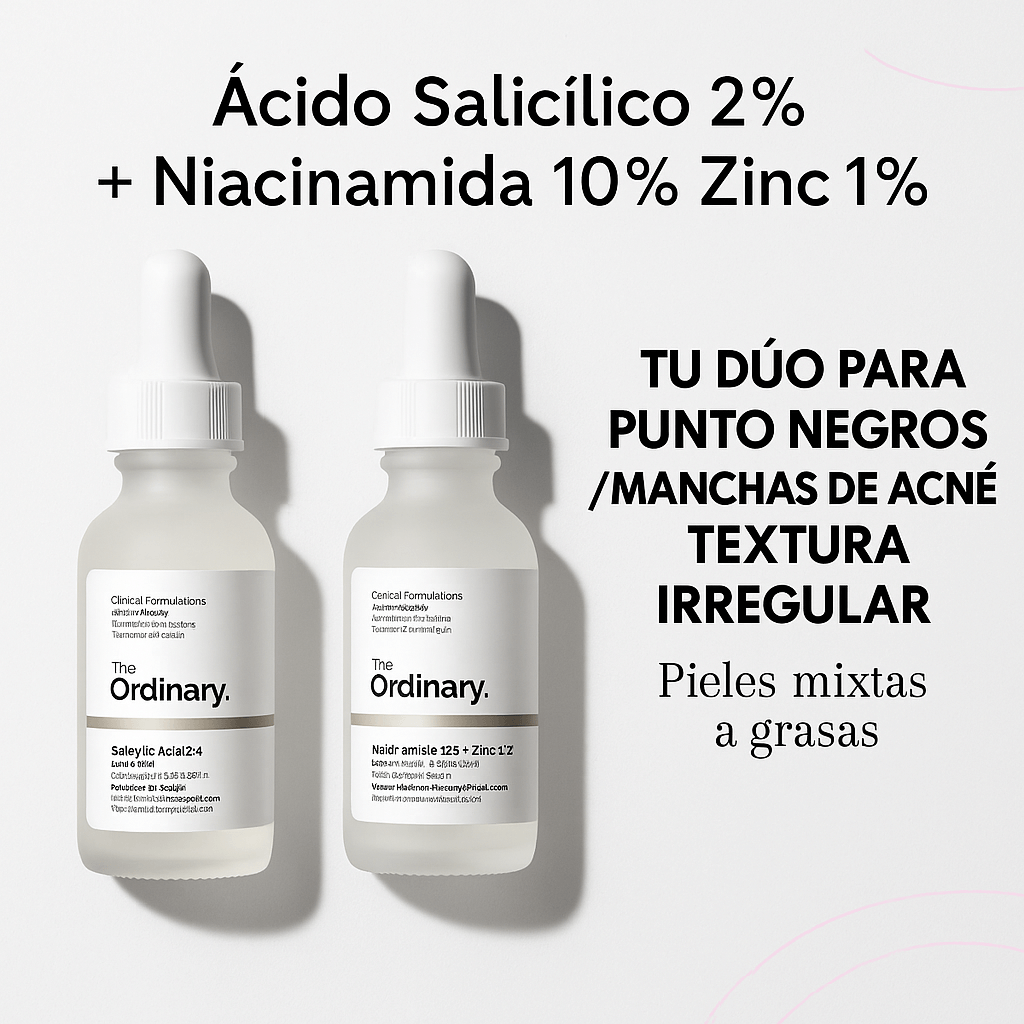 Con el uso constante del dúo Ácido Salicílico 2% + Niacinamida 10% de The Ordinary, la piel se ve más uniforme, suave y sin exceso de grasa.